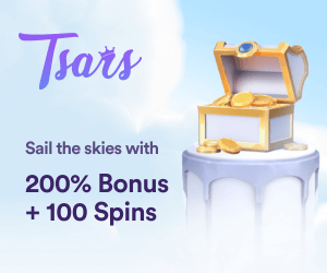 Sail the skies with Tsars Casino and get 200% in bonusses on your deposits + 100 free spins.